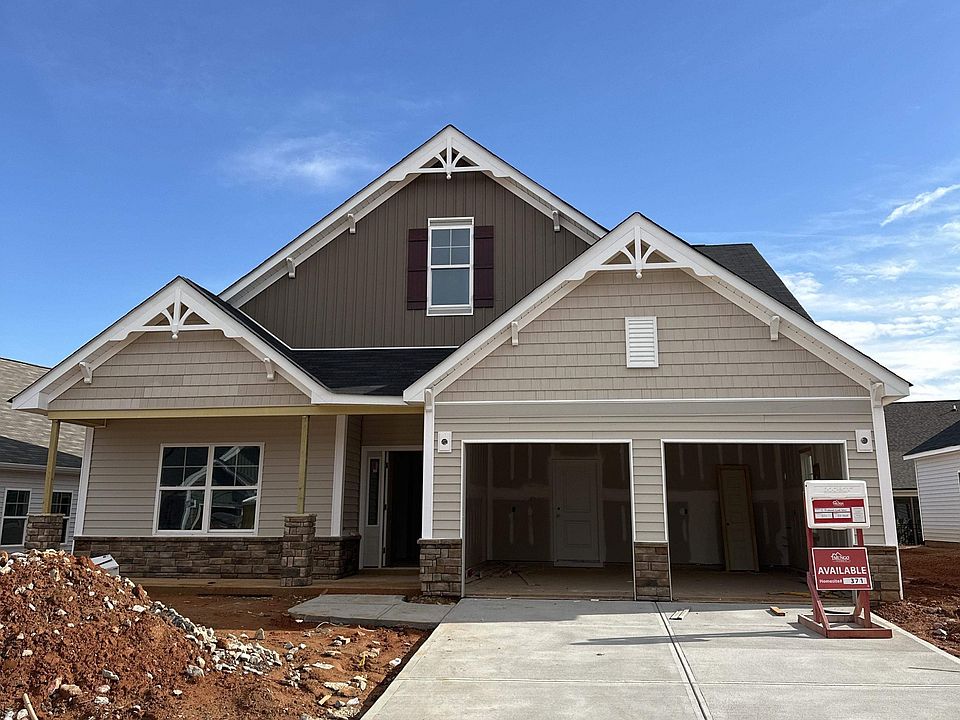Special rate offer with Builder’s lending partner 5.25 FHA/VA or 5.625 Conventional while funds last! TWO 1ST FLOOR PRIMARY SUITES! Luxury HWD Style Flooring Thru Main Living! Kit: "Blue Flower" Granite Ctops, Cstm Grey Cabs w/Crown Trim, White Tile Backsplash, SS Appls, Peninsula Island w/Breakfast Bar! PrimaryBed: Tray Ceiling, Plush Carpet! PrimaryBath: Ceramic Tile Flooring, Quartz Ctops, Cstm Cabs, Tiled Walk in Shower & Large WIC! GreatRoom: Slate Srrnd Gas Log Fireplace & Access to Rear Covered Porch! Spacious 2nd Floor Loft! Unfinished Walk in Attic Storage Area!