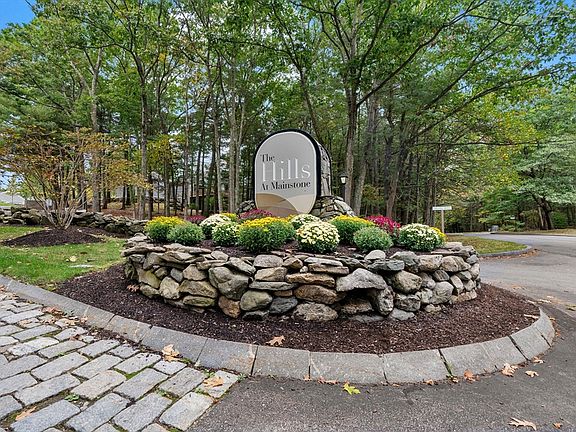 The Hills at Mainstone in Wayland - Welcome to this highly sought after 'C' style end unit townhome with 1st floor master & attached garage. Light and airy floor plan on 3 finished levels, wooded views, optimal privacy and large garden courtyard. The first floor features a spacious living room with cathedral ceiling leading to an expansive deck, as well as an open concept kitchen/dining/family room with cathedral ceiling, skylight & gas fireplace. First floor primary suite has abundant closets and laundry area. Second floor features a loft / office and another full bedroom suite. The lower level has large finished space plus huge unfinished storage space. All new exterior in 2023: windows, skylights, siding & roof plus new HVAC & water heater. A prestigious, professionally managed community, The Hills consists of 146 townhouses surrounded by conservation land & trails, yet only 30 min to Boston. Plus amenities: swimming pool, tennis/pickleball courts and newly-renovated clubhouse.