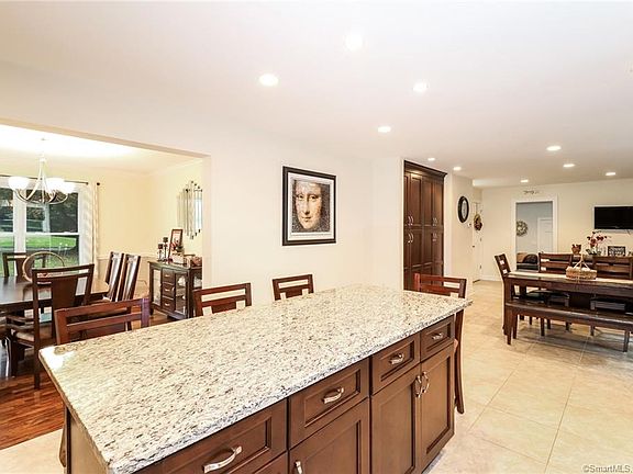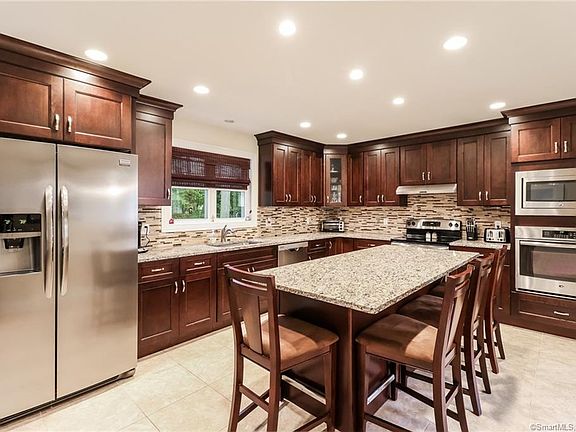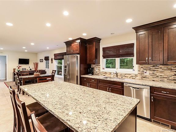 This may be just the home you are looking for! Light and bright with a modern vibe, this spacious 4 bedroom, 3.5 bath colonial with an open floor plan is totally remodeled and move in ready. Stunning kitchen with granite counters, stainless steel appliances, plenty of cabinets and a 7 ft. island opens into the dining room and also flows into a family room area for sitting and relaxing. The living room has a granite faced fireplace. A bedroom and half bath complete the first floor. The second floor master has a large walk-in closet and a luxurious bath. Two additional bedrooms on the second floor include one with its own full bath. A main bath in the hall can accommodate the third bedroom so that each bedroom has it own bath. The laundry is conveniently located on the upper level. This home features hardwood floors throughout, central air, hydro air heat and a large back deck. Set on over a level acre in one of Wallingford's sought after neighborhoods. Minutes from Choate and Wallingford's picturesque downtown. Convenient to major highways, shops, restaurants, Quinnipiac and Yale. A wonderful home for everyday living and for entertaining!