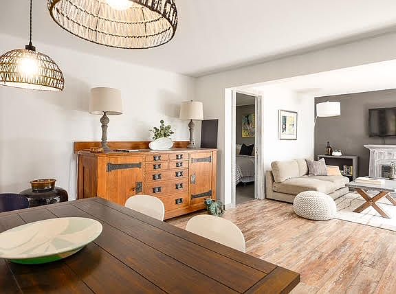 Each of the three bedrooms is generously sized, tastefully furnished, and individually climate-controlled for year-round comfort. The apartment opens to a fully fenced, landscaped private yard with a firepit & grill an outdoor sanctuary with space to relax, garden, dine, or entertain. The yard is exclusive to this unit only.