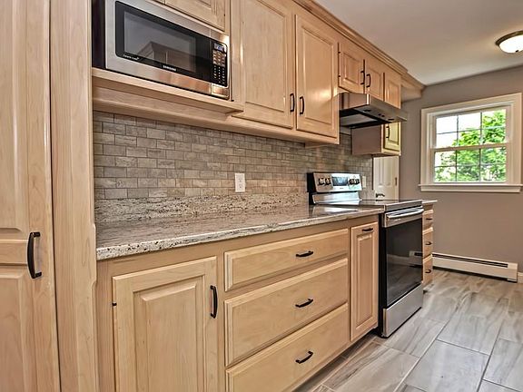 Updated Cape home in the heart of Franklin! This beautiful 4 bedroom, 2 full bath home will amaze you at first visit. The updated kitchen with stainless, GRANITE counters, double sinks, pantry, tile backslash and floors leads to the dinning area with hardwood floors and new 6' slider to your private deck. An oversized familyroom with recessed lights and pellet stove is great for relaxing while the playroom, full bath and private laundry room are just steps away on the 1st floor. The 2nd floor offers 4 generously sized bedrooms with hardwood floors and multiple closets along with an updated full bath with tile shower!This amazing home offers all of today's features you've been seeking, including a buderus furnace and air conditioning! The basement is just waiting for your finishes touches too! Come enjoy the good life while you sit on your large deck and enjoy the wooded back yard with oversized shed! This is one that you've been looking for and will want to definitely see!