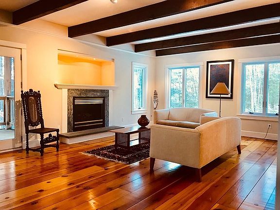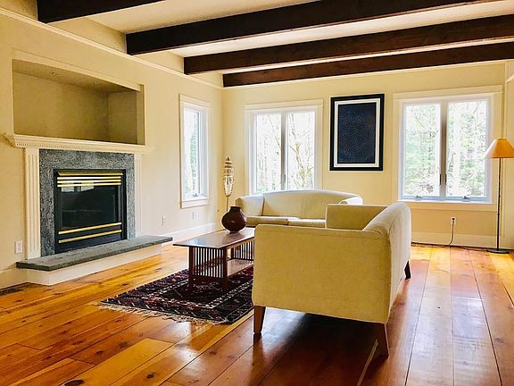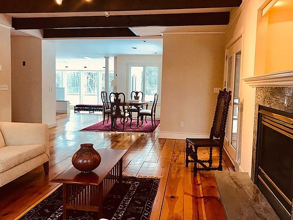 Warm and welcoming, this handsome Contemporary will not disappoint! Tucked on a 1 acre open lot which abuts conservation land and hiking trails, this desirable home offers an open floor plan including a spacious living room with fireplace, dining area, kitchen with stainless steel appliances and sun room. The private library or den has french doors which offers a nice separation from the rest of the house. First floor 1/2 bath with laundry a plus. Master bedroom with bath, 3 BR's and full bath are on the second floor. Minutes from Amherst center and close to major routes - a great location. Amenities are many and include hardwood floors, built-ins,large deck,screened porch, 2 car garage and much more. An A+ location!