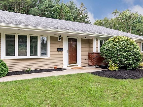 This is the ideal one floor, Hingham ranch sits on a quiet street and offers over 2200 square feet of living space. Recent updates and the open layout highlight this home. The large kitchen comes with granite countertops, stainless steel appliances and opens into the sitting room. A dining room and spacious family room equipped with a cozy fireplace separate the living space from the bed rooms. Located on the opposite end of the home from the bed rooms, is the family room. This massive room with tall ceilings and full of windows is the perfect room to sit back and relax. Find the slider door which leads to the backyard complete with a stone patio, shed and a wooded path that leads back to the Middle School. There are 3 great sized bedrooms and 2 full baths including a master suite with private bath. The attached garage and and high efficiency heating and cooling make for very comfortable living with no stairs.