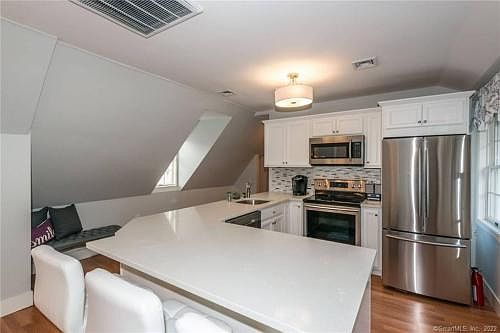 Views Best Location Walk to Town Center. Sophisticated style and a touch of elegance. Rooms are beautifully appointed. Spacious, fully furnished, one Bedroom, Bath and a half, includes all your utilities. Remodeled, eat-in-kitchen includes stainless appliances, quartz countertops and an oversized breakfast bar. A block away from Simsbury Town Center's shops, restaurants, library, walking/bike trail and Performing Arts Center. Enjoy sitting out on your deck watching the sun and moon rises. Amazing apartment in an Amazing location. Simsbury is conveniently located halfway between Boston and New York City. An easy commute to all locations and Bradley International Airport.