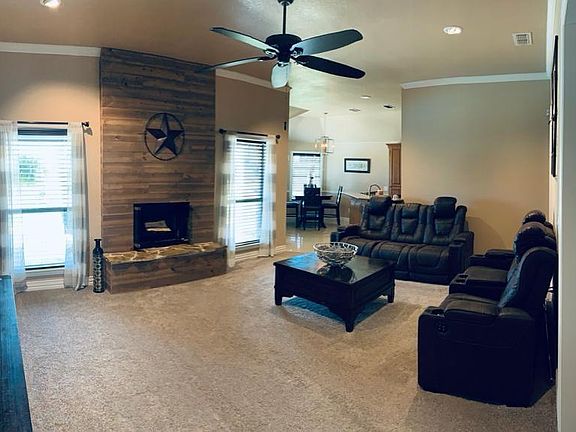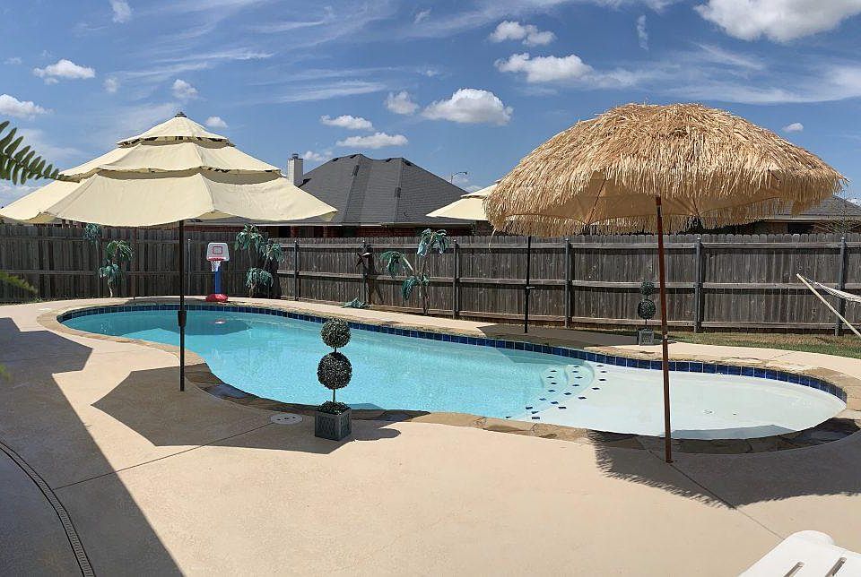 Absolutely stunning home in the desirable Eagles Landing neighborhood located in a quiet Cul-de-Sac. Poolside living area features a beautiful view on an oasis-like pool, making this an entertainer's dream. Fabulous upgrades like newly tiled bathrooms, new flooring throughout the house, new light fixture/ceiling fans, home is freshly painted, heat resistant stained patio adorns the home. Spa-like bathrooms, private seating areas outside overlooking the new sparkling pool. New above ground Storm Shelter.