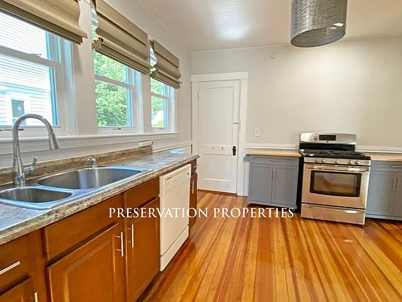 Immaculate 2 Bedroom apartment on the 1st floor of a two family home. Sunny Living room, formal dining room with a picture perfect china cabinet, and a nice sunroom with south facing windows. Nice kitchen with a huge pantry with butcher block counter and quality antique charm. Mint hardwood floors throughout, newer windows, some storage and washer & dryer in the basement. Garage and driveway parking included. You will not find a cleaner, more immaculate and charming apartment on the market. Property ID# 25430