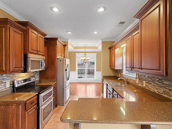 Immaculately maintained home in Traditions! This moden home is located in one of Jackson's most desirable neighborhoods. This beautiful home is one-level with 3 bedrooms and 2 full baths. The great room is centrally located in the home with an inviting gas log fireplace to enjoy this winter! So much detail from the unique tile floors to the deep crown molding. The kitchen and bathrooms have beautiful stone surfaces. Opening out to the great room is a covered back patio leading to a large brick and wood fenced yard. The primary bedroom is spacious with a large walk-in closet, an extra sitting room/office and en suite bath.