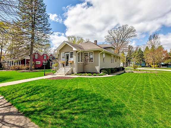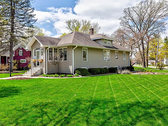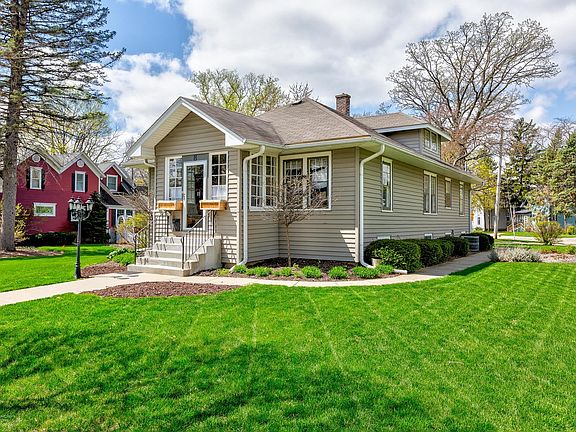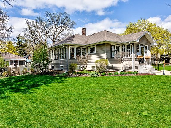 Wonderful bungalow with old world charm, just a couple blocks from downtown. Walk in through the enclosed front porch to the spacious living room, graced with crown molding and beautiful hardwood floors. It's open to the dining room, also with wonderful woodwork and enough space for huge gatherings. Built in bookshelves! The sunroom is surrounded by windows that bring the sunlight in. It's amazing and a perfect place to relax with a book and your morning coffee. The kitchen has lots of updated cabinets and an amazing amount of counter space. The appliances are newer, with 2 built in ovens and cooktop. There's a second stove in the basement, too! 3 bedrooms and a beautiful bath round out the main floor. You'll love the partly finished basement with its high ceilings. It has a separate room, maybe for exercise? There's a nice room for a bedroom and a newer full bath! There's also a fully floored attic with windows, great for storage. The 2 car garage has new garage doors and lots of pegboard for all your tools plus a workbench. This yard is amazing, so many perennial plantings, rhubarb and a culinary herb garden. Don't miss the pictures on the dining table. This home is so close to downtown and the shops, restaurants, Metra, the Raue, the library, schools and more! Don't miss the update list in Additional Information. Basement stove and fridge stay.