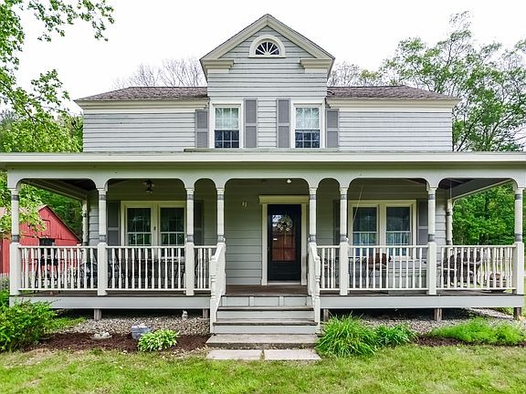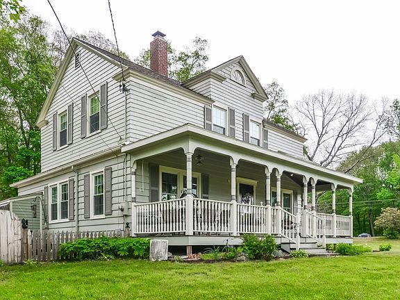 First time offered! Own a piece of history, lovingly restored by the current owners. Originally built by The Covell Family in 1900 who owned and operated a local feed and grain store in Thompson. The home sits on a beautiful 4.6 acre corner lot. Perfectly perched atop a gently sloping hill, this home beckons you to a bygone era. With its large sycamore trees in the front and its iconic red New England barn you will feel like you have gone back in time as you drive up to this property. This home has all of the charm that you would expect from a house built in this era like built-ins, coffered ceiling and hardwood floors. A farmers porch adds to the charm of this house where you can enjoy the spectacular view from atop the hill. The fenced-in side garden which features a coy pond lends itself as an outdoor entertaining space. While the home retains much of its original charm updates included newer thermal windows, roof and a large half bath and laundry room addition on the main floor. The pantry kitchen can be easily expanded into a large custom kitchen adjacent to the formal dining room. This home offers excellent indoor and outdoor space for entertaining. Outside there is a 25'x25' barn with loft as well as a 8'x20' shed. Cool off after a hard day's work at this potential horse property or hobby farm in the outdoor shower. This property is potentially sub-dividable. Come and view this beautiful home and all the charm it has to offer.