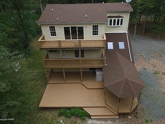Large, modern 4 bedroom home that backs up to State Game Lands is the perfect spot for a primary home or a vacation getaway home. This home features 4 bedrooms, 3 full baths, 2 1/2 baths, a modern kitchen, an open living area and much more. Some of that much more includes a finished basement with pool table and shuffleboard and 3rd floor living space. Outside has a stone driveway with a 1-car garage and a third story balcony.