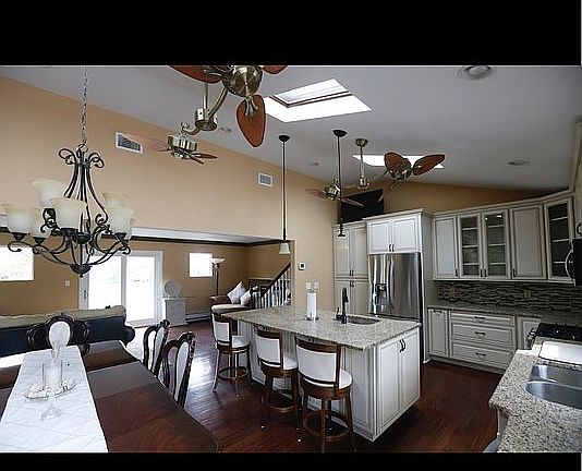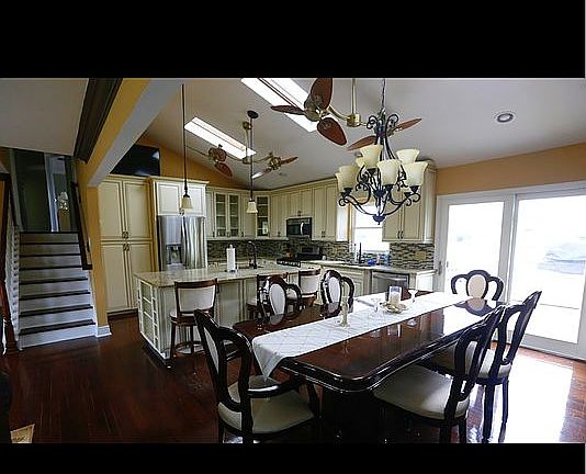 Boaters delight with spectacular river view. Home situated on a cul-de-sac with 2-car garage and circular driveway. Home contains 3 bedrooms, 5 full bathrooms. Kitchen, Living room, Dining room and den. Second floor laundry room. Oversized master suite with walk-in closet. Multi-level decks overlooking river with dock containing boat and jet ski slips. Finished Basement has an additional den, kitchen and bathroom with storage room and entrance to backyard.