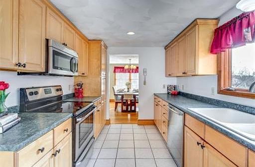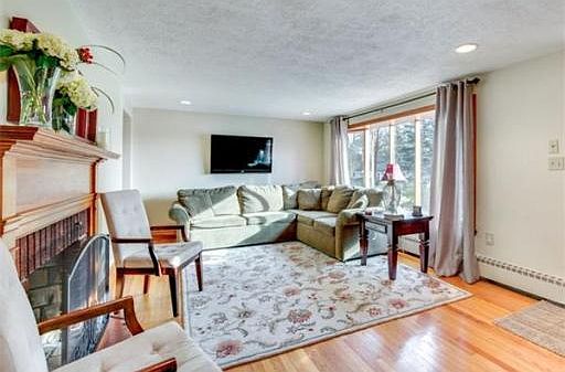 Location! Location! Location! Beautifully updated 3BR, 2BA ranch on quiet cul de sac in sought-after neighborhood. Updated kitchen with custom cabinets, SS appliances and new granite countertops; opens into formal dining room. Spacious living room with fireplace, recessed lighting and gorgeous hardwood floors. Features also include 2 designer baths, new addition with cathedral ceilings & skylights, new water heater, Burnham burner, newer roof, and a stone patio that makes for great outdoor living. COMMUTER'S DREAM ADDRESS close to pub transp, Town Common, new HS, shopping & more.