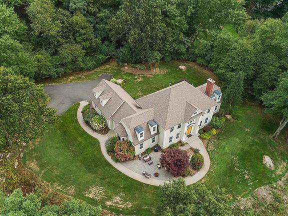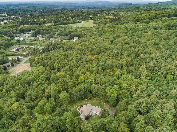 Enjoy privacy, location & size in this beautifully sited, wooded hillside home that inspires elegance & warmth. This 4400 sq ft unique colonial is a must see with spacious, sun filled rooms, cathedral ceilings & custom woodwork throughout. 1st floor boasts builder upgrades including a master suite, vaulted great room, pocket/french doors & a kitchen built for entertaining. Work remotely from the study complete with built ins & fireplace. Full hardwood staircase past the dedicated laundry room leads to 4th bedroom with it's own office space & walk in closet. 2nd floor hosts an additional family room as well as 2 bedrooms with a Jack & Jill bath suite & an open balcony. Finished basement w/additional egress offers an additional work space & closet, fantastic game room/gym & 3/4 bath . Private drive connects you to nearly 8 acres of beautiful, changing scenic views by season. Built by the areas premier builder , this house is most definitely not to be missed.