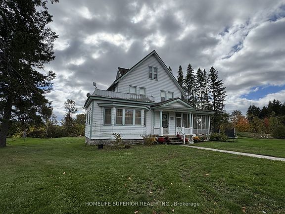 Check out this Rural Village Charmer in Deloro! The character & large property (1.67 acres) will surely catch your attention. There is 300 square feet of living space on 3 floors. This lot includes the Deloro cement letters in the lawn. The front majestic entrance welcomes you, with a country screened in porch, large principal rooms including formal dining area, 2 living rooms, eat-in kitchen, summer kitchen with pantry & back stairway to 2nd level. The home offers main floor laundry with a laundry shoot from the 2nd floor, a front stair-way to th e2nd & 3rd level of the home. There are 7 bedrooms & 3 washrooms with original wood floor & trims, & has a hot water boiler heating system & metal roof.