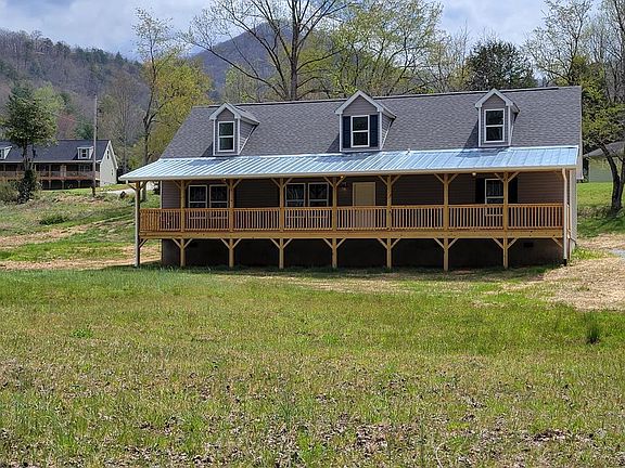 This is a tremendous property with creek frontage, a great view, level access and a new, never lived in 3 bedroom 2 bath home on 1.39 acres.. LEVEL~ 9' high ceilings with crown moulding, LVP flooring and high-end fixtures throughout... The home has a gorgeous covered deck overlooking the creek and long range mountain view. It's a split floor plan with 2 bedrooms and a bath on one side, and the Primary on the other. Fully appointed kitchen with granite tops, a spacious pantry and a sweet outside deck at the dining area... it also has a very large laundry facility complete with inside/outside access and a walk-in closet.Truly "single level living" On the upper level, there is an enormous media room complete with "wet bar" "bricked bar and backsplash" and concrete counter tops! The upper level will have HVAC installed shortly per the owner... upper level is roughly 1000 sq. ft.