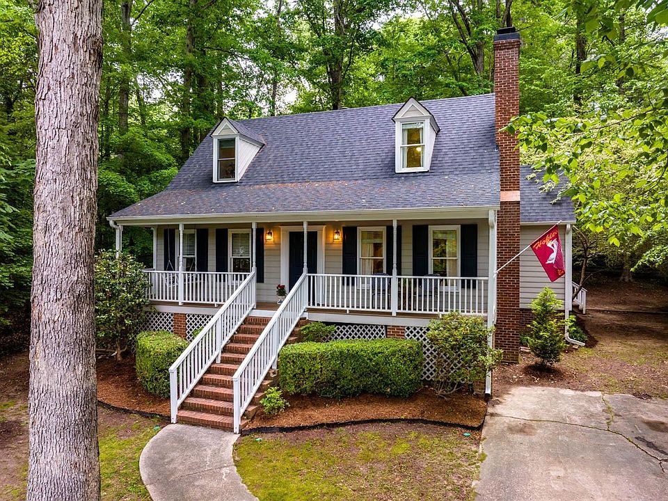 Welcome Home to Woodcroft!! *Hop on over to 8 Rabbits Glen Terrace, an UPDATED Cape Cod surrounded by wooded views *Tucked away on a desirable 1/4+ acre cul-de-sac lot *4 BR's & 2 Full Baths - 4th BR makes for great home office/bonus room/play room or flex space if needed *Kitchen offers granite, subway tile, custom wainscoting, S/S appliances, lots of counter space & breakfast bar *Cozy living room with wood-burning masonry fireplace *Spacious MBR with WIC *Smooth ceilings, updated bathrooms & lighting *Hardwoods & tile on 1st floor *Several floored attic/scuttle areas for storage + additional storage room on rear of home *Huge covered rocking chair front porch surrounded by mature trees & overlooks cul-de-sac *Private rear deck & grilling patio + fire pit area in backyard *New 30-Yr Roof - 2018/Carpet - 2020/Dishwasher - 2021 *Only steps to neighborhood trails that also connect to American Tobacco Trails *Convenient to Southpoint, UNC, Duke & RTP...See you soon!