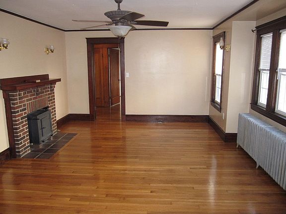 NO PETS! This is a completely updated cottage style home with farmer's porch. The entire house has been freshly painted and the hardwood flooring has been completely restored throughout. The kitchen has country style cabinets with new counter tops and new tile flooring plus a new stove, microwave and refrigerator. The living room has a wood burning stove insert and the dining room has a built-in hutch and leads to a cozy sun room with many windows. There's vinyl siding, vinyl replacement windows, several ceiling fans, attic storage and in the basement is a washer/dryer hook-up. Close to shopping, schools, parks and highways while located in a neighborhood setting. The rent includes landscaping. One year lease with first month's rent, last month's rent and one month's security deposit due at lease signing.
