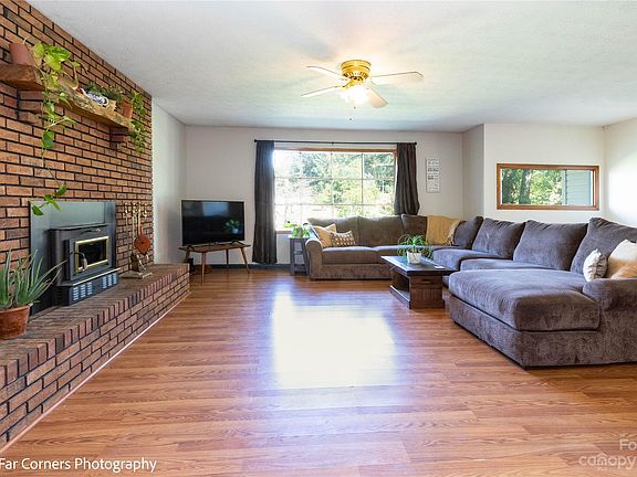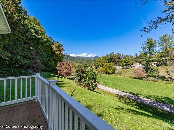Three spacious bedrooms and 2 full baths on the main floor. Lovely living room with large window, gracious year round views and a cozy wood burning fire place. Deck just off the dining room with bright morning sun and mountain views. Downstairs has a large den/bonus room with another wood burning fire place, kitchenette, a roomy full bathroom and laundry. Brand new HVAC system just installed for heating and cooling. Large 2 car garage off of downstairs living space. Mostly clear 1.48 acre lot with plenty of room to play, relax, garden etc. This home is just minutes from Canton and approximately 25-30 mins to Asheville.