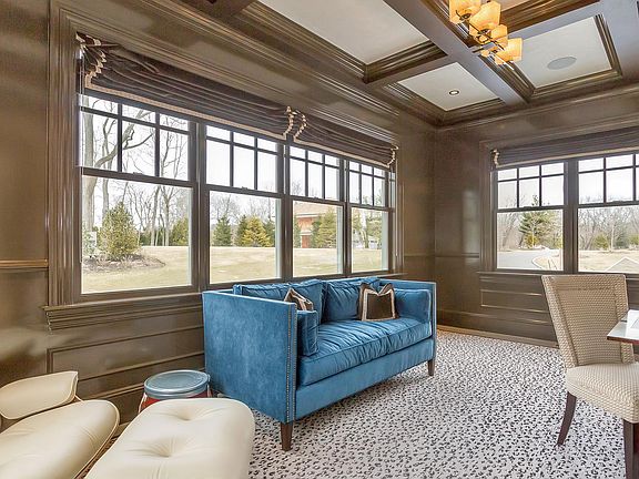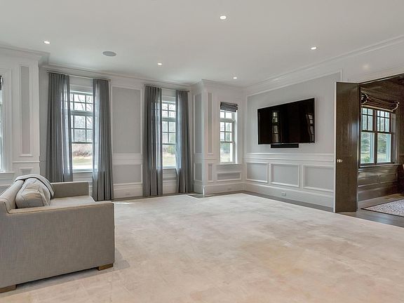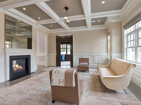 Old Westbury. Offering luxurious North Shore living, this stately 2014 Georgian brick Colonial masterfully combines the grandeur of the Great Gatsby era with the bright and airy ambiance popular today with the latest in modern comforts and technology. Set serenely on a park-like 2 acre property with a brand-new heated inground Gunite pool, with automatic cover, and bluestone surround to match a large rear patio. This home has a welcoming presence, ideal for year-round lavish living. Located in Old Westbury, just 30 minutes from Manhattan, Kennedy and LaGuardia airports, this home is conveniently located near Old Westbury Gardens, Nassau County Museum of Art, and The Childrens Museum of Long Island. TheAmericana Manhasset shopping center, several country clubs, and miles of public equestrian trails, as well as world class restaurants, polo clubs, yacht clubs and beaches, are all in close proximity to this elegant home. Located at the end of an approximately 900-foot private road shared by two other equally-grand estates, this inviting retreat proves its Twenty-First-Century origins as guests enter from its custom landscaped and gated driveway to the classic Colonial exterior of this center-hall mansion. Here, a touch of modern sophistication enhance its classic detailing with transitional touches throughout. In the two-story entrance foyer, sunlight enters through a Palladian transom with diamond-pane sidelights. Custom cut herringbone Calcutta marble floors, fielded-panel walls, and a custom iron staircase with stunning brass handrails make the entrance of this home breathtaking. The house boasts custom White Oak wood floors, bleached dove grey, and custom laid in a herringbone design to match the foyer. The dining and living rooms have brass floor inlays, coffered ceilings, fielded-wall panel moldings, and a gas see-through fireplace (functioning on an electric switch). This side of the fireplace is adorned with antique mirror trimmed in brass. Off the living room are large double doors opening to a sun-drenched study featuring shining lacquered walls, making for a traditional library in a very modern home.On the other side of the foyer is a breathtaking, one of a kind, formal dining room, offering coffered-ceilings and exquisite paneled moldings. Custom painted wallpaper, measured and produced specifically for this room, was crafted and hand painted by artisans in Japan. The Herringbone oak wood floors, with brass inlay flow through the butlers pantry into the kitchen. The butlers pantry has custom made hardware on the cabinetry and Calcutta marble countertops. This room holds one of three sinks with Waterworks fittings and features a wine refrigerator and an ice maker. Separated from the foyer with a pocket door, the grand gourmet kitchen, made by GD Cucina in Italy, boasts all custom cabinetry. Crown moldings and white Calcutta marble countertops, thicker than most seen on the market today, and full wall sheet of Calcutta marble backsplash create an elegance within.A large center island with two waterfall sides holds one of two kitchen sinks, with Waterworks fittings, a hidden microwave oven and storage. All the appliances are European, by Gaggenau and include a sixburner gas range with Waterworks pot filler, two full refrigerators and freezers, a steam oven, a warming drawer and convection oven, and two dishwashers. Open to the spacious breakfast area with French doors to the rear patio, an inviting family room features a double sided glass gas fireplace, with book-matched Calcutta marble sitting atop, shared with the living room. Completing this floor is a separate wing with mudroom, access to the 3 car garage, outside entrance to the patio, walk-in closet, walk-in pantry, and full bathroom.On the second floor, a serene and over-sized master suite includes a bedroom with fielded wall moldings, high tray ceilings, plus an incredible master bath with all custom made Carrera marble walls and antique mirror, a custom twin vanity with leather panels, and a glass-enclosed steam room with three sets of exposed Lefroy Brooks shower/bath fittings and free-standing Waterworks tub. Two custom-fitted closets add to the suites luxury, but not to mention a separate custom womans closet, the size of a bedroom, with Marble Island. Completing this floor are three bedrooms all with baths en suite and beautifully appointed with custom designed tilework. The full finished basement is another level of living and entertaining for both the children and adults, and features a play area and art studio, a study, a glass-walled wine cellar, a gym/dance studio with mirrored wall and dance bar, as well as two bedrooms and two full baths. The basement also has a spacious laundry room, with custom subway tiling, featuring two full size Electrolux washers and dryers. With great attention to details and quality materials, this spectacular residence has everything you could imagine in the home of your dreams.