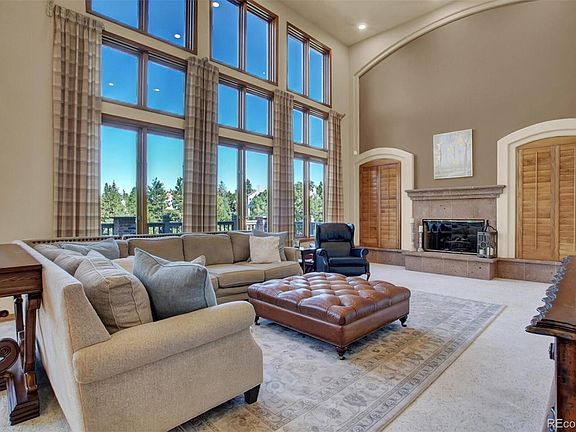 Welcome home to this beautifully appointed executive home in Highlands Ranch. Privately set on a lushly landscaped half-acre cul-de-sac lot, showcasing majestic mountain views and has magnificent street appeal. The dramatic 2-story entry greets you with a sweeping staircase & beautiful hardwood floors. Enjoy the spacious kitchen with Taj Mahal Quartzite center island, stainless appliances, walk-in pantry & breakfast nook. The kitchen opens to the family room with a soaring ceiling, warm fireplace, and large windows to enjoy the spectacular mountain views. The elegant formal living and dining room allow a separate area for entertaining and relaxation. Finishing up the main level, you\'ll find the private study with gorgeous custom built-ins. The upper level features a stunning master suite with its own fireplace, plantation shutters, sitting area, luxurious master bathroom, deck with a view, and a custom walk-in closetThree spacious secondary bedrooms, all with their own en suite bathrooms & walk-in closets top off the upper floor. The walk-out basement is perfectly set up for a mother-in-law, teen, or nanny quarters. Offering a huge private bedroom with custom built-ins, bathroom with sauna, a full bar, gym area, game/rec room, media room, and flex space. Enjoy the outdoors all year with an oversized covered patio & a beautiful park-like yard. You\'ll feel like you\'re away from it all, yet you\'re close to shopping, restaurants, parks, trails, light-rail, 470, I-25, DTC, and Denver! Highlands Ranch amenities include activities, events, the Backcountry Wilderness Area, and 4 HRCA Recreation Centers.