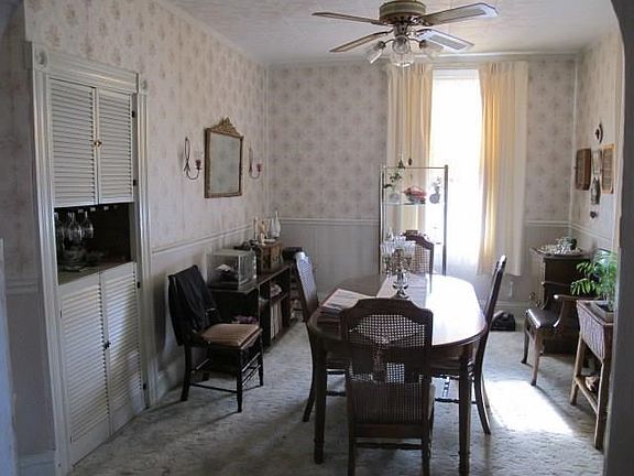 Spacious two+ story dwelling featuring an eat-in kitchen with butlers pantry room, living room boasts of a decorative fireplace and octagon windows, den, dining room has a built-in china hutch, ceiling fans, covered front and rear porch, 2 car detached garage with fenced-in back yard. Did have a second floor kitchen at one time.