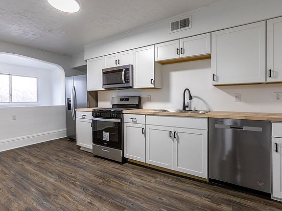 - Exterior features: Eat In Kitchen, Large Living Room, Large Windows, NEW paint, New Appliances, No Utilities included in rent, Renovated