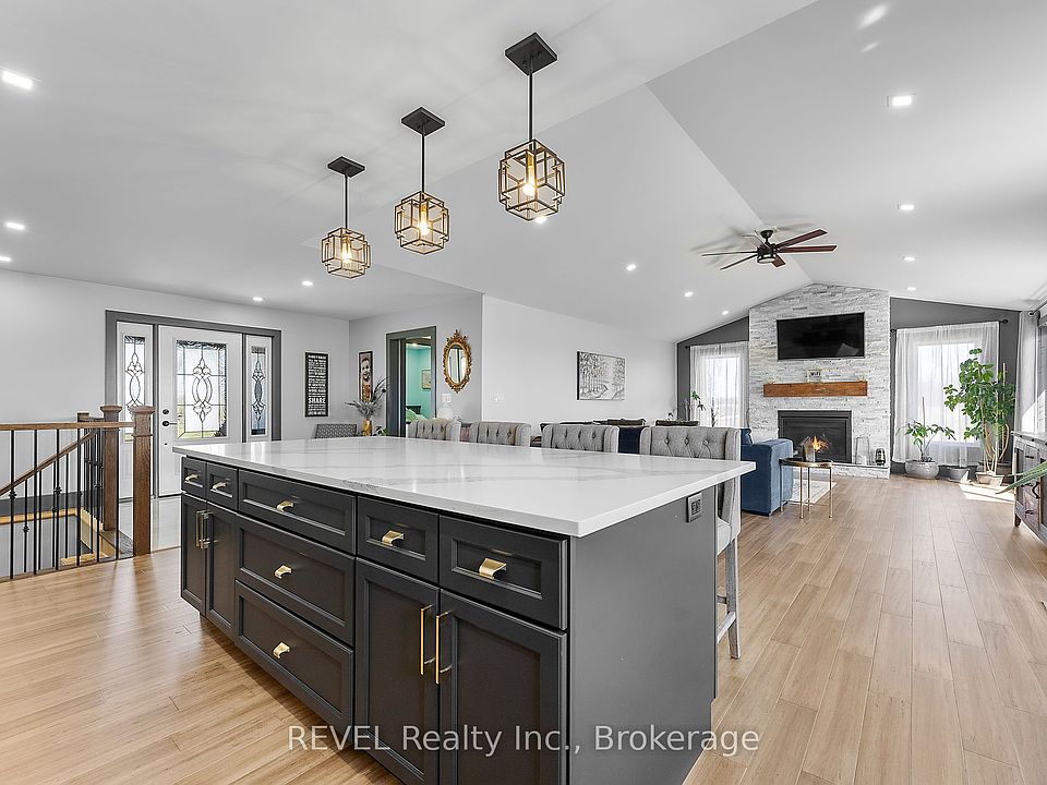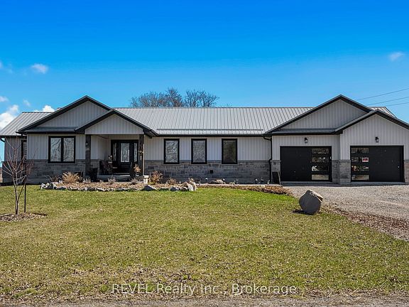 Look no further! This custom built bungalow in Selkirk is your ideal oasis located on a 0.6 acre lot, near the tranquil waters of Lake Erie and surrounded by nature. Live in luxury with elevated finishes throughout this stunning home, from the porcelain floors in your entry foyer and bathrooms, to the vaulted cathedral ceiling and imported kitchen backsplash straight from Spain. In the kitchen enjoy an oversized island with storage on both sides, quartz counter tops, cabinetry with crown moulding and stainless steel appliances including a gas stove. The open concept living room boasts bamboo flooring, recessed lighting, a propane fireplace in beautiful stone mantel, and access to your covered back porch. The functional split floor plan features 2 sizeable bedrooms and 2 full bedrooms, including a primary bedroom with walk-in closet and 3 piece ensuite bath. Downstairs the unfinished basement of over 1600 square feet with legal egress windows, extra high ceilings, and bathroom rough-in is the perfect canvas awaiting your finishing touches. Outside the double attached garage with separate doors provides plenty of storage for your vehicles or outdoor toys and the triple wide driveway allows parking for 10+ cars. Leading up to the house is a lovely stamped concrete walkway, lined with flower gardens and ending at a covered front porch. The metal roof comes with a transferrable lifetime warranty, and the hot water tank is owned. Welcome to stress free, move-in ready living.