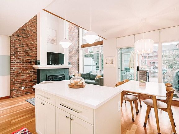 Murano Lofts TOWNHOME in the New West Quay. One of only 6 of these rarely available homes: concrete, sound proof, gentle 4 split w/ minimal stairs between floors! 20' ceilings on main & 9' ceilings throughout oversized, bright beautiful windows, 5 amazing patios/decks including a fully private ROOFTOP DECK w/ massive gazebo, fireplace and South facing lagoon views and partial view of Fraser River! Meticulously maintained and thoughtfully updated. BRAND NEW KITCHEN! - stylish soft green cabinetry and beautiful stone counters, fresh lighting and appliances! Large Primary bedroom with 4 pcs ensuite and courtyard views! Pet friendly (2 cats or dogs), concrete building with well-equipped gym & yoga room, guest suite. Rentals allowed. Two parking & Storage. Enjoy life in vibrant New West Quay!