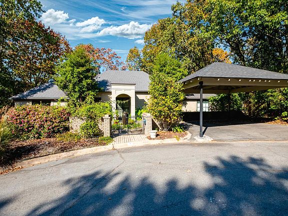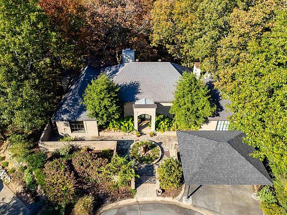 Private and secluded, this beautiful home sits on an awesome cul-de-sac in Robinwood. Two-car carport and low maintenance yard w courtyard and water feature. Beautiful French doors open to Living Room w fireplace and 11-foot ceilings. Custom kitchen cabinets, granite countertops and eat-in breakfast room overlooking private backyard. Lives like a one level with ensuite primary bedroom on main level and den and guest quarters downstairs. It is in great condition and backs up to green belt. Perfect for single, couple, or family w college student. Such a lovely home in a beautiful setting.