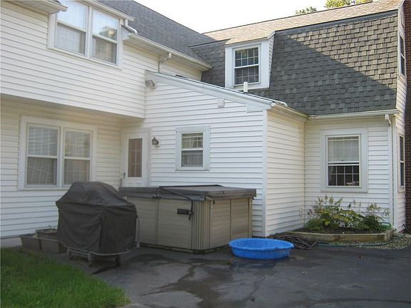 Charming 2243 sq ft 4 bedroom 2 bath Colonial. Relax in the huge family room with built in entertainment speakers, beautiful oak kitchen with appliances, including wine chiller. Formal dining room with built in hutch and formal living room with gas fireplace offer hardwood flooring. Spacious master bedroom boast two walk in closets. First floor laundry, new boiler unit, 4 year old tear off roof, 2 car attached garage, hot tub, above ground pool. Situated on deep city lot, close to shopping and thruway
