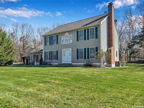 Impressive Colonial features 3BRs, 2.5 Baths, 2 car garage, plus a 624 sq ft detached heated 2 car garage w/approved studio apt on 2nd floor that could be used for rental income-home office(cabled for high tech equipment. The new custom kitchen sports new hardwood floors,high-end cabinets & hardware, center island, granite counters, wine bar, & black stainless steel appliances. The eat-in kitchen has sliders to your private deck w/awning & patio nestled on 1.63 acres to entertain friends & family. A formal Dining Room w/crown molding, cozy LR w/fireplace & wood insert, half bath, & laundry room completes the 1st floor. The bright, open hallway & notable 2 story foyer w/chandelier, Palladian window & winding staircase leads to the 2nd floor is great for displaying artwork. Master BR boasts hardwood floors, walk in closet, & master bath. Two more comfortable BRs w/plenty of closet space & full bath are right down the hall. The basement-woodworkers dream has many layout potential to finish for add'l space. The back yard is private w/maintenance free landscaping & has an oversized barn w/loft and plenty of storage. Recent upgrades include hardwood floors, kitchen cabinets & countertops, wine bar, kitchen appliances, fresh paint throughout, central air conditioning, & a wood insert fireplace capable of heating the entire house. A 119 acre Land Trust is located at the end of the cul-de-sac provides extensive hiking trails, follow the white trail to Sheepskin Hollow Pond.Must See