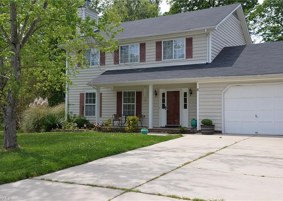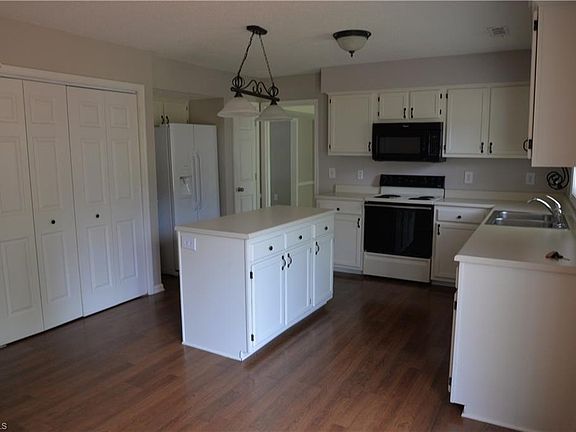 Cul-de-sac lot on a quiet street in Kildare Woods! Great open floor plan with large rooms. Wood burning fireplace in great room. Kitchen has lots of room with an island and pantry. Sliding glass door in kitchen leads out to deck with seating. Wooded back yard. Fresh paint downstairs. Carpets cleaned. This home is ready for a new family. 1 car garage. Roof in 2011. New HVAC in 2014. New microwave 2014.