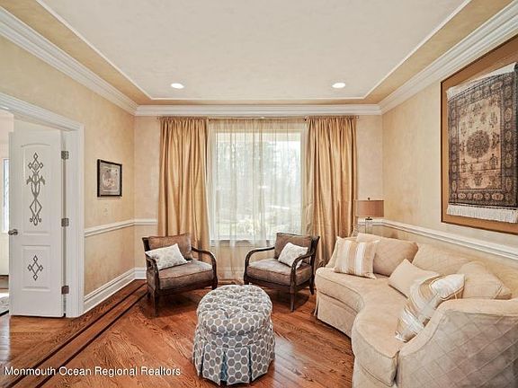 This is a must SEE. Custom Sea Shore Colonial Beautifully located in NAVESINK. 07716 postal code. Minutes to NY Ferry, Beaches and parks. Luxury design and elegant light-filled open living space . Featuring 4 bedrooms, 4.5 baths, gourmet kitchen, granite counters, high-end appliances, breakfast nook, and walk-in pantry. Richly appointed with inlaid hardwood floors and custom mill working. Expansive Master BR with spa-like en suite bath. Lower level great for entertaining adding approx 1000 sq ft of living space not included in total sq ft. Cherry wet bar. Billiard and entertainment area. 2nd gas fireplace and full bath. Expandable attic. Generac Generator. Relax outdoors on the covered front porch, deck, or paving stone patio and private back yard.