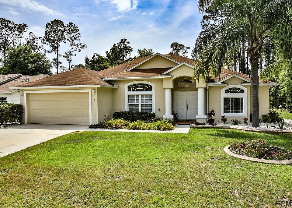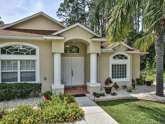 Call today- Listing Agent- Mike Andrews 386-864-9900 True Custom home located on a quite cul-de-sac street, just 8 miles to Flagler Beach. Owners maintained the interior & exterior meticulously. Wide open floor plan. 10 foot ceilings throughout with Great room, Living room/Den, Dining room, eat-in-kitchen and large Bar Top. 18 inch Tile floors throughout and Hardwood floors in all 4 bedrooms. Large Chef's kitchen with ample Custom Cabinetry with crown molding, Soft Close drawers, Sliding Shelves in cabinets, Level 5 Granite with matching Whirlpool appliances. Private Master bedroom with sliders leading to the Covered Patio, Double Walk-in closets, His & Her Granite Vanities, Garden soaking tub with Separate Shower. Crown molding in EVERY room, 6' baseboards, soft decorative archways, Custom lighting, Custom fans all with remote controls and dimmers. Reverse Osmosis filtration under kitchen sink and Whole House Ultraviolet water filtration system installed 10/2018. AC 2016. Rheem Water Heater 2017. Concrete curbing surrounds all landscape