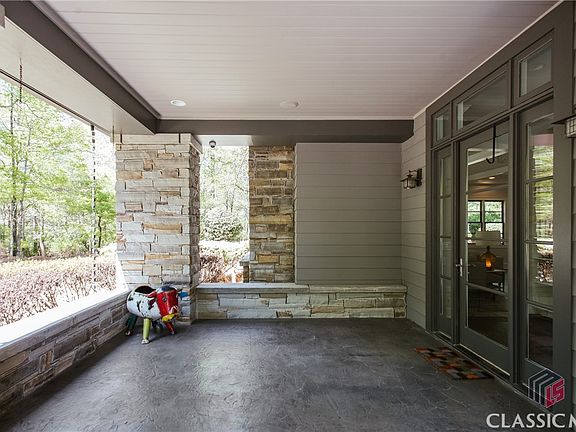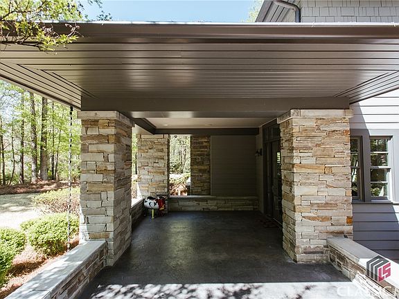 Hidden Gem located in the private gated subdivision of River Shoals on almost 3 acres! This Frank Lloyd Wright inspired home features an open floor plan on the main level with foyer, great room with stone fireplace, dining room and kitchen as well as a guest bedroom on the main level. Upstairs there are two additional bedrooms, third bath and the owner's suite with 2nd fireplace, updated bath and custom closet as well as a loft office space with custom built ins and cabinetry. The entire home has been completely renovated, as well as a custom pool and spa built. Fenced side courtyard area has patio space, and there is a large covered front porch as well as rear screened porch which allow for tons of outdoor relaxing or entertaining. Enjoy grilling at the outside grilling kitchen, watch the DAWGS play on the poolside TV or listen to your favorite music as there are speakers throughout the home and outdoor spaces.