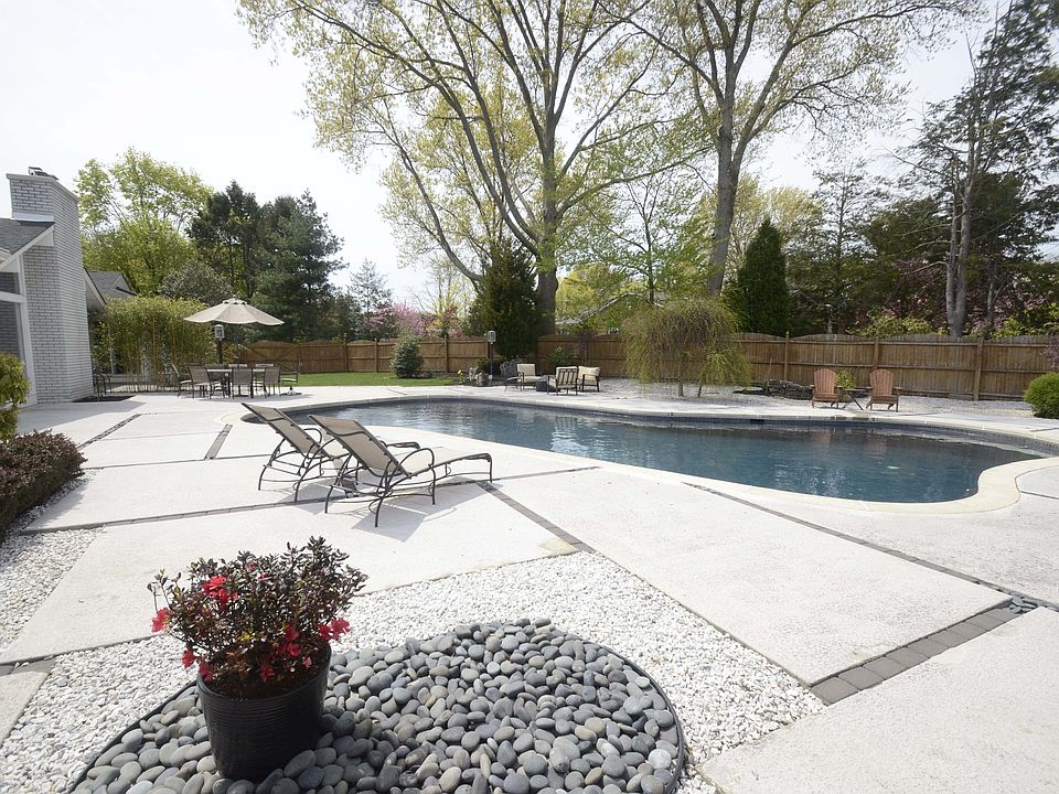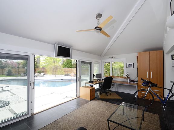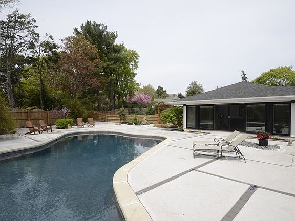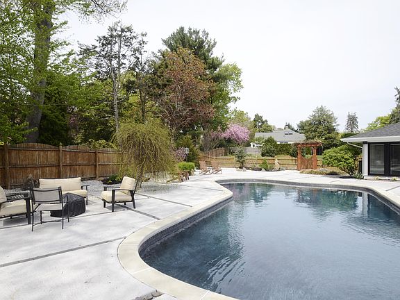 This designer home is an entertainers dream home with easy open floor plan and the most spectacular pool & cabana or home office to suit your needs. Home was Remodeled and extended in 2007 and boasts vaulted ceilings, sky lights & custom finishes throughout. The over sized LR/DR which overlooks the serene backyard & pool area includes a wood burning FP, beamed ceiling & wet bar. the gourmet kitchen/bfast area features Viking appliances & slate floors and custom built-ins.The breathtaking great rm has an abundance of light, custom shelving/built-ins & gas FP. The finished lower level has travertine floors, a laundry room, bedroom and full bath, rec area, work station & room perfect for an office w/closet. The property has an organic garden and large side yard to complete the picture.