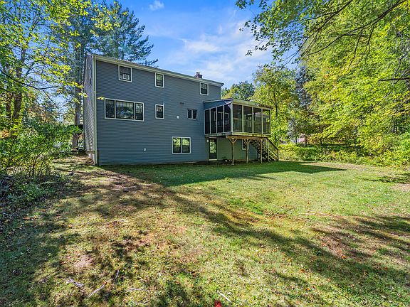 Situated at the end of a cul-de-sac, this 4-bedroom, 3-bath colonial offers privacy, beautiful land, and great curb appeal on 1.76 acres surrounded by mature trees. The screened-in porch off the kitchen overlooks the backyard, creating a perfect spot to enjoy crisp fall mornings. The main level offers hardwood floors in the formal dining room and spacious living room, along with a den featuring wood floors, built-ins, and a fireplace. A first-floor bedroom provides flexibility for guests or a home office. The eat-in kitchen showcases vintage charm with updated flooring and direct access to the screened in porch. A freshly painted half bath with laundry hookup, new flooring, toilet, and vanity completes the first floor. Upstairs, the spacious primary suite features hardwood floors and an updated en suite bathroom with a tiled shower, new vanity, and fresh paint. There is also two additional bedrooms with hardwood floors and a guest bath with tub on this level. Recent updates include the roof and siding (approximately 10 years old), a new well tank and pump (Feb 2024), and a water heater replaced within the last year. The home also features existing ductwork, offering a convenient starting point for adding a future central air system. The unfinished basement provides generous storage or the opportunity to create additional living space. Conveniently located near Routes 185 and 178 and minutes from shopping and dining, this home blends classic charm with modern pract Subject to Probate Court Approval