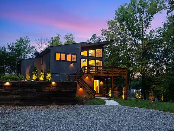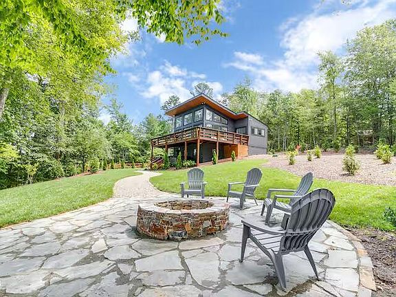 The ''Modern Treehouse'' has incredible lake views from all sides of the property! The sunsets are surreal and are perfect for relaxing in the hot tub, hammocks, porches, patios, or paddle boarding! Upstairs living area is full glass views of the lake with 18 foot vaulted ceilings and two private bedrooms and two full baths divided by the kitchen. The basement is set up as a TV room with full surround sound and a full bath/Jacuzzi tub. Just out the door is the outdoor hot tub and outdoor shower! Beautifully landscaped and wonderful relaxing firepit! This is true gem on Hyco Lake! Everything in the house will convey! Exceptional Airbnb, with over 240 reviews! Inground wireless landscaping! There is no boathouse on this property, but one can be rebuilt.