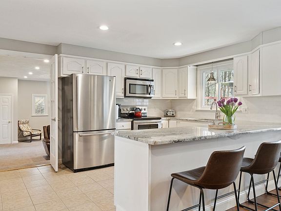 **Offer due by 4pm on Sunday 4/7** Rare opportunity to own in the highly desirable town of Bedford! This 3-bedroom, 2-bathroom Ranch has been updated throughout and ready for you to move in. The home boasts 2,256 sq ft and is set back on a 1.5 acre lot! The kitchen features stainless appliances, granite countertops & white cabinetry. The open floorplan is perfect for entertaining guests as they relax by the wood burning fireplace in the living room! The primary bedroom has its own en suite bathroom. There are two additional good-sized bedrooms! Convenient laundry room with storage space above. Host dinners in the formal dining room! You’ll love the high ceilings in the family room. The 3-season porch warms with natural sunlight! The fully fenced backyard is perfect for kids and pets. Relax on the patio and overlook the level wooded yard! This home is in a fantastic location with easy access to all the amenities you could need. One of the top-rated school districts in Southern, NH! Delayed showings to start at 2pm on Friday 4/5.