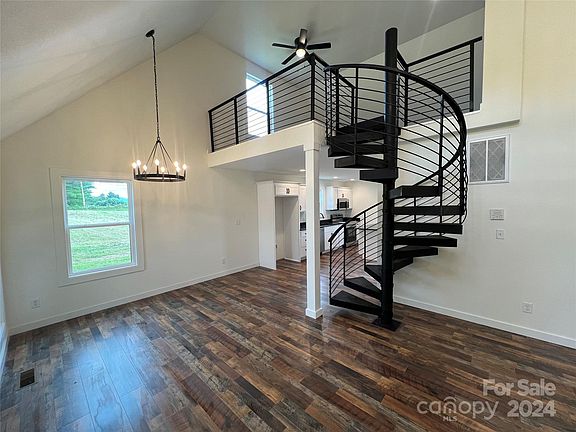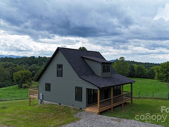 Very Unique new construction home with beautiful black spiral staircase. Located in the rolling hills of Leicester, there are magnificent sunsets off the back porch with plenty of back yard space. Fantastic opportunity for a primary home or a vacation/second home. Less than 15 miles to Downtown Asheville and even closer to Weaverville. An abundance of windows provide great natural light, as well as the tall ceilings. Spacious loft on second level with mountain views. Electric range, dishwasher, and microwave already installed. Granite countertops, new survey completed and recorded, short term rentals allowed.