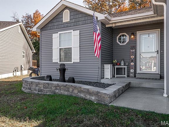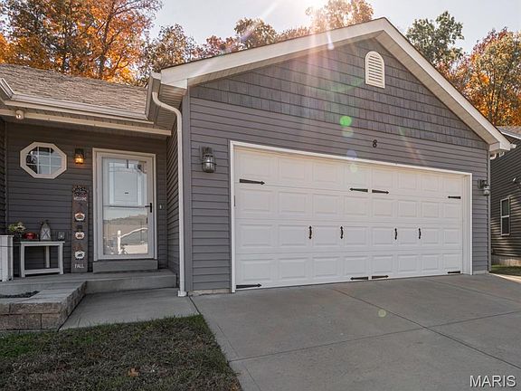 Welcome home to 8 Rockshire Landing in Herculaneum—a move-in-ready 2020 ranch that lives large with an open-concept layout and generously sized bedrooms. Step inside to a bright great room featuring a stunning coffered ceiling, gas fireplace, and upgraded flooring, plus an open spindle staircase and upgraded trim that add a custom finish throughout. The kitchen is made for entertaining with custom cabinetry, a large island, stainless steel appliances, smooth-top range, LED lighting, and a stylish backsplash, flowing into the breakfast area with access to the deck overlooking the fenced backyard—perfect for relaxing evenings under the stars. The primary suite feels like a retreat with a cathedral ceiling, ceiling fan, and calming natural light. Extra touches include can lighting, ceiling fans in the great room and primary bedroom, and an extended driveway with additional concrete for extra parking. Downstairs, the unfinished basement offers incredible potential with an egress window and rough-in for a future bathroom, ready for a home theater, gym, or guest suite. Enjoy a neighborhood lifestyle with a community pool, playground, and basketball court, plus fun community events like food-truck nights that make it easy to meet neighbors and love where you live. All of this with a home warranty. Schedule your private tour today!!