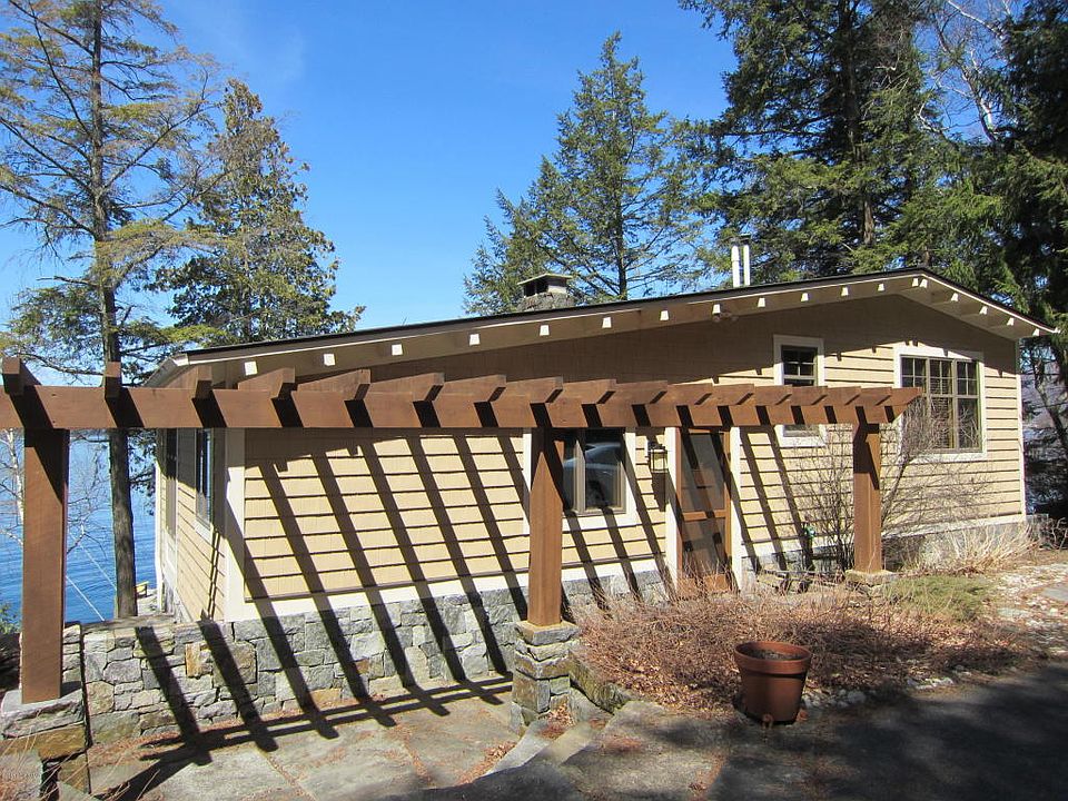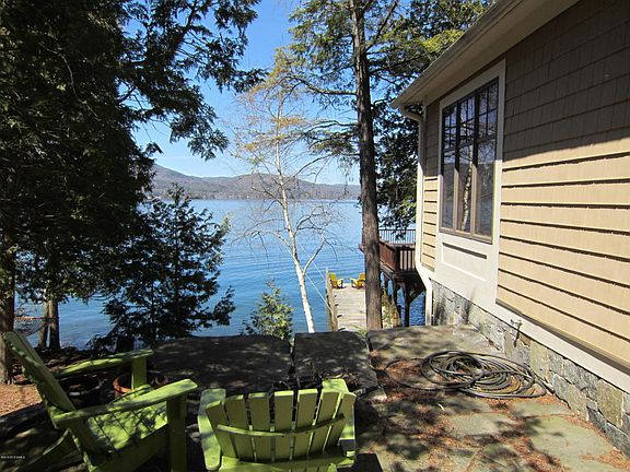 LAKE GEORGE! Waters edge location- well maintained and recently renovated camp plus a new garage with a guest suite and a workshop! Camp has a rustic feel- knotty pine walls, Living and kitchen with stone FP, lower level family room with stone fireplace, 3 BRs & 1.5B. Walking bridge to your oversized sundeck covering your dock with docking for 4 boats, 100' lakefront. Incredible main lake vistas plus a view of the Sagamore.