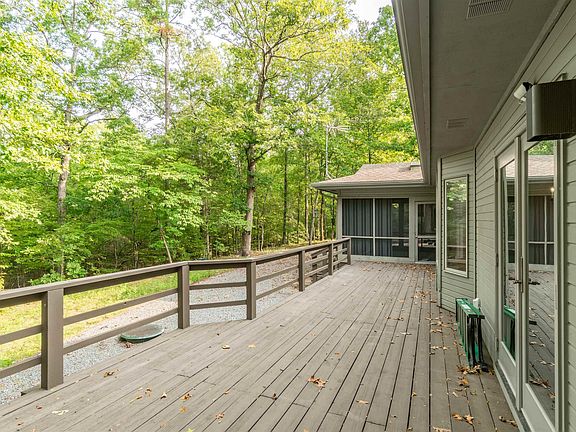 Open private deckWooded viewEngineered birch flooringCorner wood burning fireplaceScreened porchBreakfast nookGenerous kitchen with island