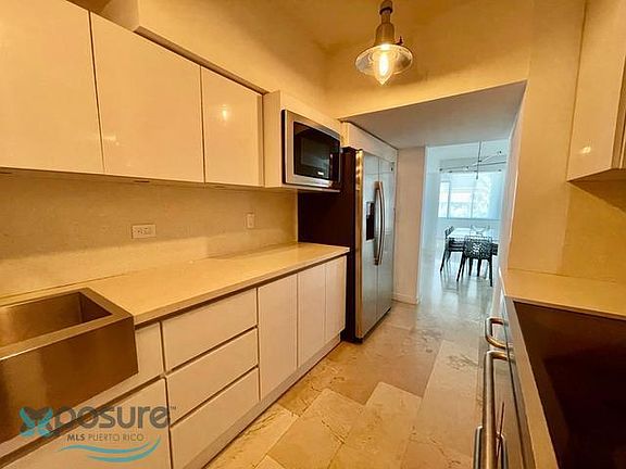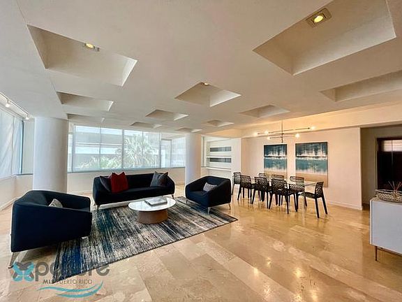 Condado: Fully furnished and remodeled apartment with ocean views. Spacious living and dining room, 2 bedrooms convertible to 3, home office, 3 bathrooms and 1 parking space. Very private, two apartments per floor. Equipped kitchen with stainless steel appliances, marble floors. Conveniently located walking distance to the beach, restaurants, schools, and other commercial establishments..