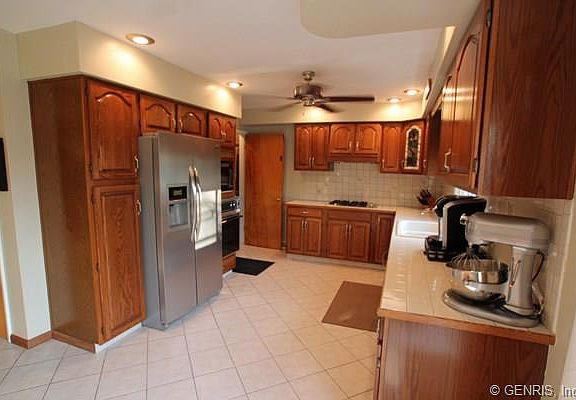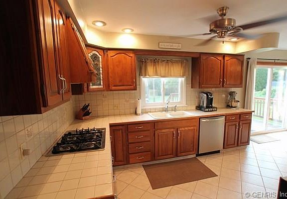 Amazing home for the money! This ranch has a gorgeous kitchen with raised oak cabinetry with glass accent door. Tile counters and tile flooring. The baths have been completely remodeled. Basement is finished and includes 1/2 bath and beautiful rec room area. Outside the party size deck is a great place to enjoy the yard. Vinyl sided. Newer roof.