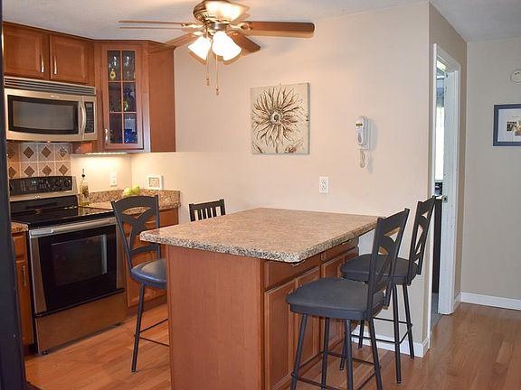 Wonderful opportunity to get into Marshfield under $200k. Desirable top floor unit is light and bright and boasts a great location. Conveniently, just half a mile to the highway, and a quick drive to the beautiful beaches of the South Shore! Gorgeous kitchen with hardwoods floors, soft close cabinetry and island seating, spacious living room with hardwood floors, recessed lighting and slider to balcony. Other improvements include recently redone Master bedroom, with fresh paint, and new carpeting. Windows and slider have been replaced too! Laundry available in building. Complex is on the GATRA line, and is close to restaurants and shopping. Pack you bags, and make an appointment today!
