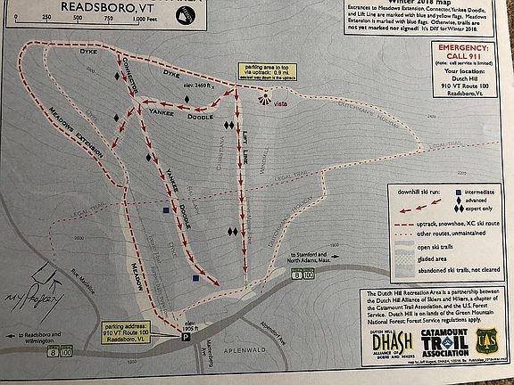 1.1 Acre Building lot . On town serviced road ,with other residential homes. Power available on street in front of lot. No HOA fees. Adjacent property is the Dutch Hill recreational area, hiking .Biking, snowshoeing, cross country skiing. VAST snowmobile trail runs close to lot. 40 min to Mt, Snow. Great for vacation or your permanent residence . perc. test was performed for septic.