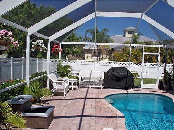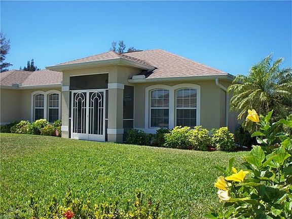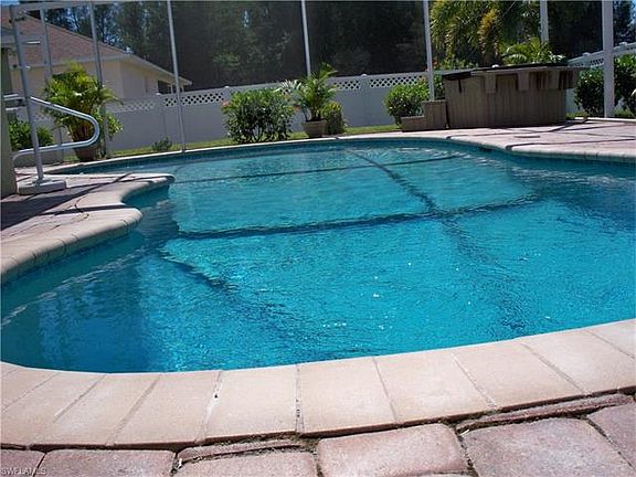 **You want to see this home** Price reduced for quick sale.This meticulously maintained 3 bedroom + den 2 bath pool home checks all the boxes on your home wish list & more! A must see home. Upgrades galore. Over sized lot. Open concept floor plan with large kitchen granite counter island, lots of storage in wood cabinets all open to great room entertaining that leads out the an extra large solar heated pool with paver deck. Plenty of sun or shade! Above ground 6 person spa with multi color lighting. Outdoor patio furniture included! Private cabana shower with hot & cold water! Interior 20" diagonal set porcelain floor tile. Front room can serve as family room, formal dining, game or play room. Flex space you can change anytime. Master has door out to pool deck, walk in closet, seamless glass shower & soaking tub. Master & guest bath have wood vanities & granite tops. Bedrooms are all ample size. Laundry has lots of shelving for extra storage, washer & dryer included. AC has surge protection & UV lights. Water purifier at kitchen sink. Located in SW Cape Coral with all the amenities nearby. See upgrade list attached. This property is NOT in next utility expansion area per City.
