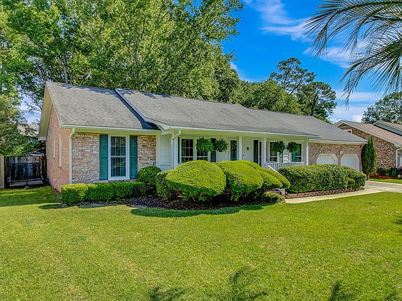 This nicely landscaped brick home is the perfect house for the family, situated on a spacious lot on a quiet street with no thru traffic in the Otranto subdivision having no HOA fees. This 2,190 sq feet ranch style home has a front porch with sitting areas, renovated granite countertop, 2.5 baths, 3 bedrooms and a FROG.As you enter the home, the attractive hardwood floors go throughout the entire downstairs. Crown molding is in every room. Ceiling fans are in all bedrooms, den, and FROG. The formal living room flows into the formal dining room with its beautiful chandelier, the perfect place to host a family gathering for holidays and special occasions.The eat in kitchen area also has a high ceiling with a bay window having a view of a large, shaded back deck, a spacious well shaded fenced in backyard. There is also an 8x12 foot tool shed and a big playground area with swings, tube slide and playhouse. The renovated kitchen with its granite counter tops and decorative backsplash has stainless steel appliances with lots of cabinet space. The huge FROG above the two-car garage has large attic spaces for storage. Specific features: The garage floor is covered with comfortable, long lasting rubber puzzle mats. The house also has an encapsulated crawl space. Community amenities include: landscaped common areas, playground/picnic area, zoned for Hanahan schools, lots of shopping nearby along with Northwoods mall, variety of well known restaurants close by, easy access to I-26 and only 20 minutes from downtown Charleston. It will not last long.