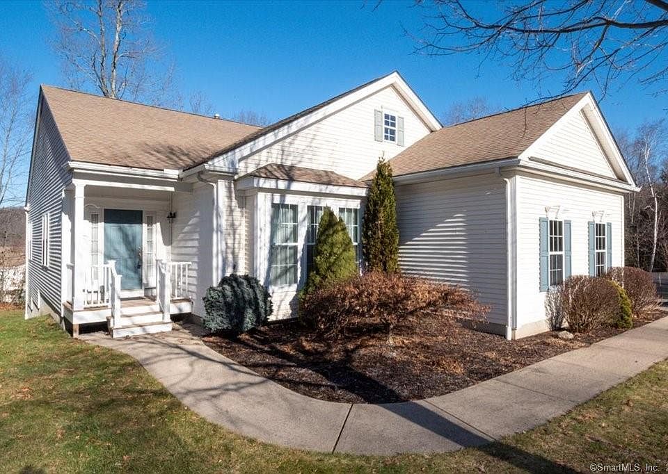 A RARE FIND! A beautiful setting for this free standing ranch home in desirable OxBow Ridge, Canton's premier active adult neighborhood! Set on a quiet cul-de-sac with privacy and seasonal vistas down the valley, this community enjoys a convenient location to town, Rt 44 and the quaint village of Collinsville with its charming green, shoppes and Farmington River access. Warm wood floors run throughout this lovely home which boasts a welcoming covered entry, detailed woodwork, and an open floor plan that offers the opportunity for merry gatherings in the connected living and dining rooms. The beautiful cook's kitchen features Corian counters, a breakfast bar and overlooks an airy family room with gas fireplace and sliders to the deck and view. A sun-filled primary bedroom is just around the corner and enjoys a pampering tile bath with whirlpool tub, stall shower, double sinks and walk in closet. A guest bedroom has an adjacent full bath. The walk out lower level is a dream with a large media/rec area, a private study and a full tile bath. Plenty of storage/work space completes this level. Come see this exciting home in a special place to live.